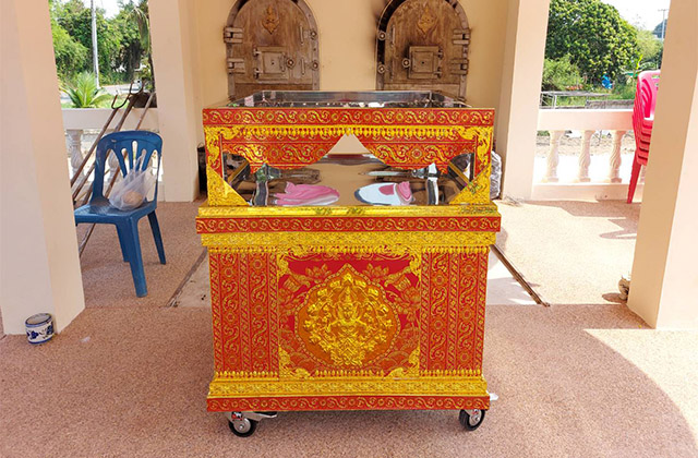 โลงเย็นลายนูนดิ้นทองพร้อมยอด